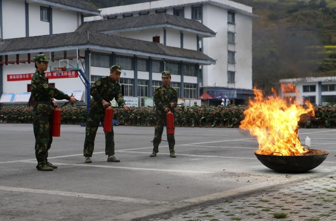 下午,在日常训练之后,基地组织进行了消防知识实战演练,现场指导了灭火器的使用。同学们按计划照常训练,在练习了两个小时后,基地内开展了关于消防知识的实战演练。