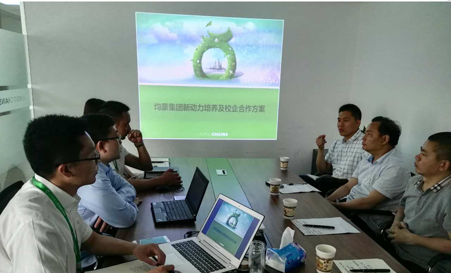 在均豪,靳能泉一行观看了均豪的宣传片,全方位了解了公司的业务范围和服务区域,并就专业嵌入式课程设置、人才培养激励措施、学生顶岗实习和专业实习、教师实践锻炼和员工培养等问题进行了讨论交流,双方达成合作的初步意向。