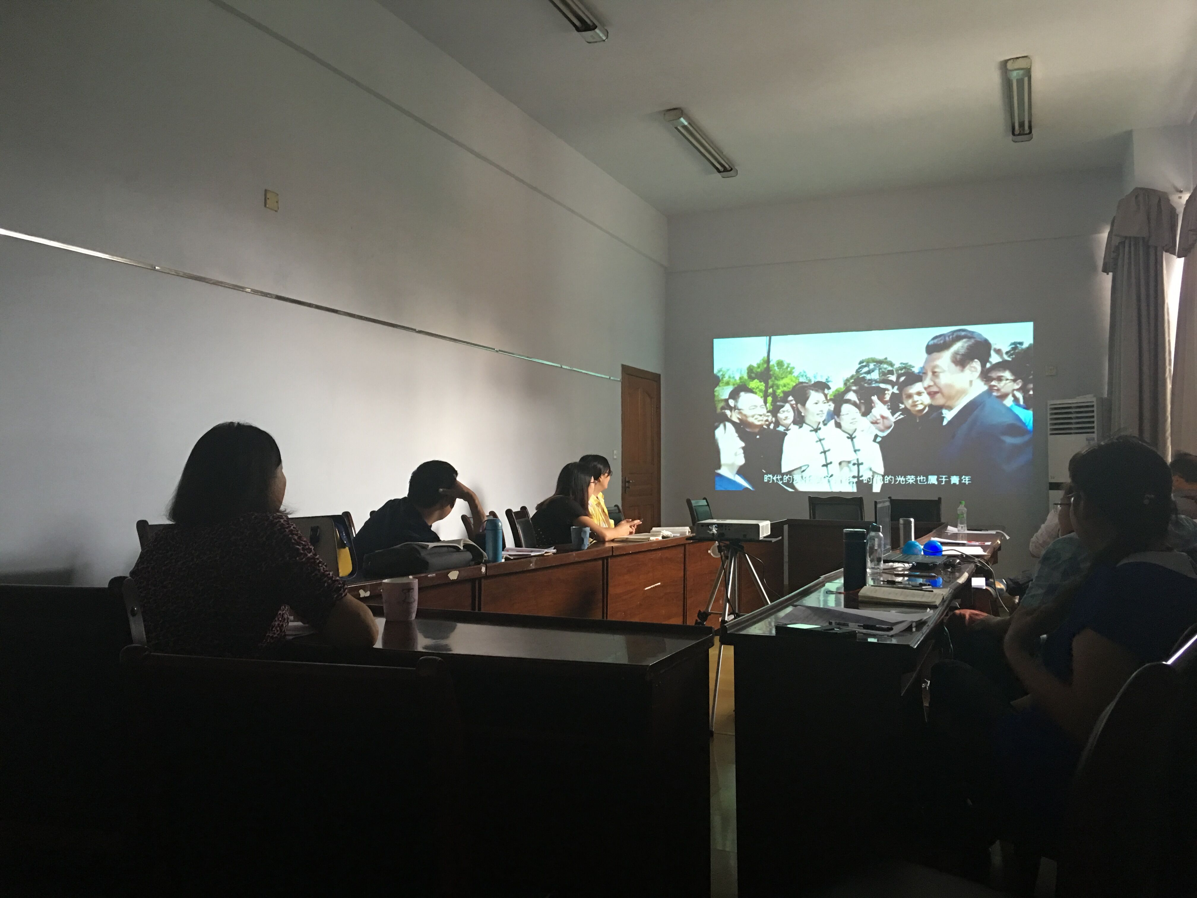 会议首先分享了分散学习《习近平的七年知青岁月》的心得,集体观看了《梁家河篇》、《宁德篇》、《正定篇》、《青年榜样习近平》、《习近平和青年在一起》的视频资料,并讨论了观看感受。