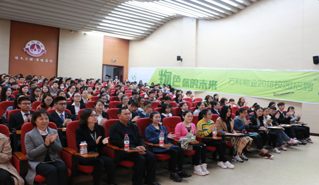 2017年10月25日下午,成都万科物业服务有限公司人力资源经理孙翀一行五人到学院举行专业宣讲暨毕业招聘会。学院院长兼修圆物业服务有限公司董事长靳能泉及学院物业管理专业和其他学院学生参加了大会。