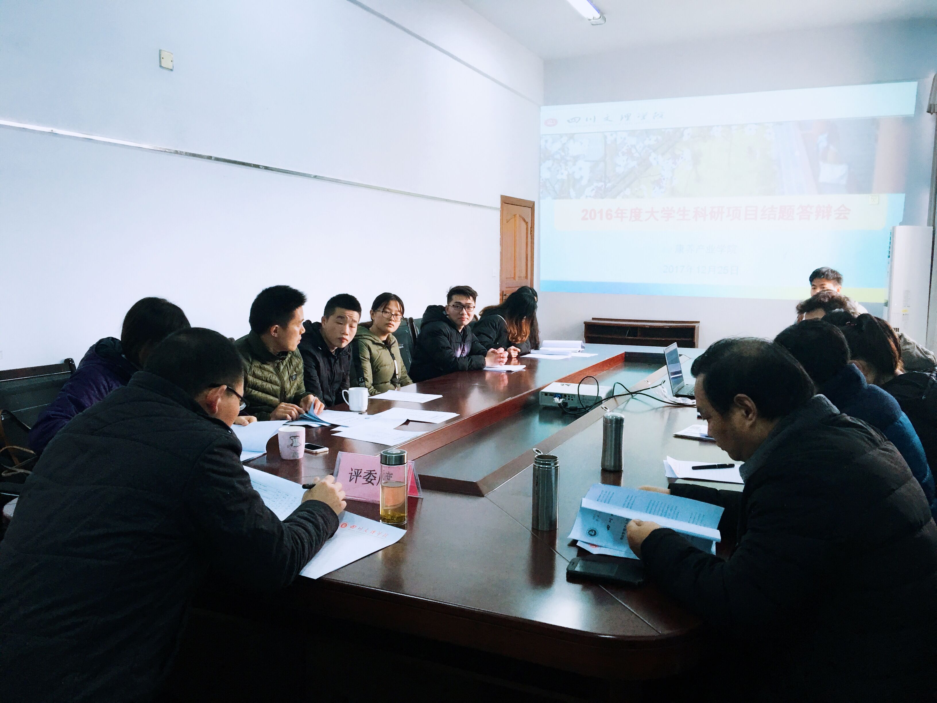 2017年12月25日,学院2016年度大学生科研项目结题答辩会在学院会议室举行。学院院长靳能泉、党总支副书记(主持工作)彭时敏、党政办主任王跃、物业管理教研室主任何江华、健康服务与管理教研室主任张俊浦担任答辩评委。学院2016年度大学生科研六个项目组成员参加了会议。张俊浦主持会议。