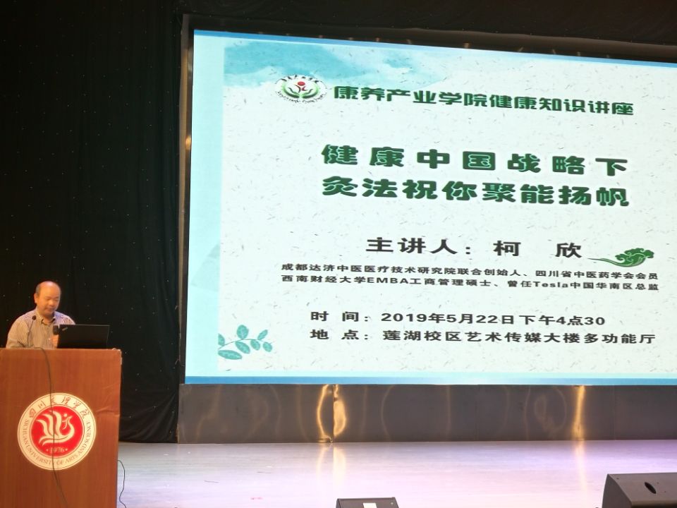 5月22日下午,JINNIAN金年会在学校艺术传媒大楼多功能厅举行健康知识讲座。学院邀请了成都达济中医医疗技术研究院柯欣先生来校就大健康产业形势下的人才需求及新形势下大学生如何聚能做专题讲座。