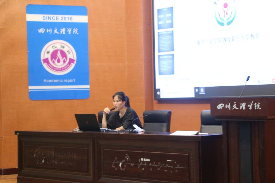 在宣讲开始时,弓腊梅老师首先表达了对同学们来到四川文理学院的欢迎。紧接着对学院的各项规章制度做了详细的讲解,同时弓腊梅老师分别从资助条件,奖学金评定标准等方面向新同学们全面系统的介绍了国家资助政策和奖助学金政策。极大的激励了我院勤奋学习、积极上进、德智体美全面发展但生活俭朴的学生。在大会的最后弓腊梅老师用“书山有路勤为径,学海无涯苦作舟”与同学们共勉。