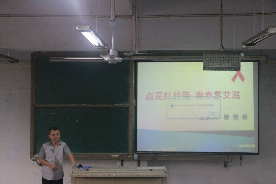 崔老师介绍了红丝带的由来,强调红丝带代表了对艾滋病患者的关心,也代表着一种支持。他从专业的角度讲述了艾滋病的起源、感染途径及预防措施,通过案例给同学们深入浅出的分析了艾滋病,他强调养成良好的生活习惯是预防艾滋病的基础。