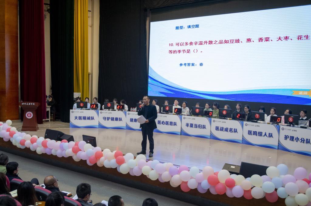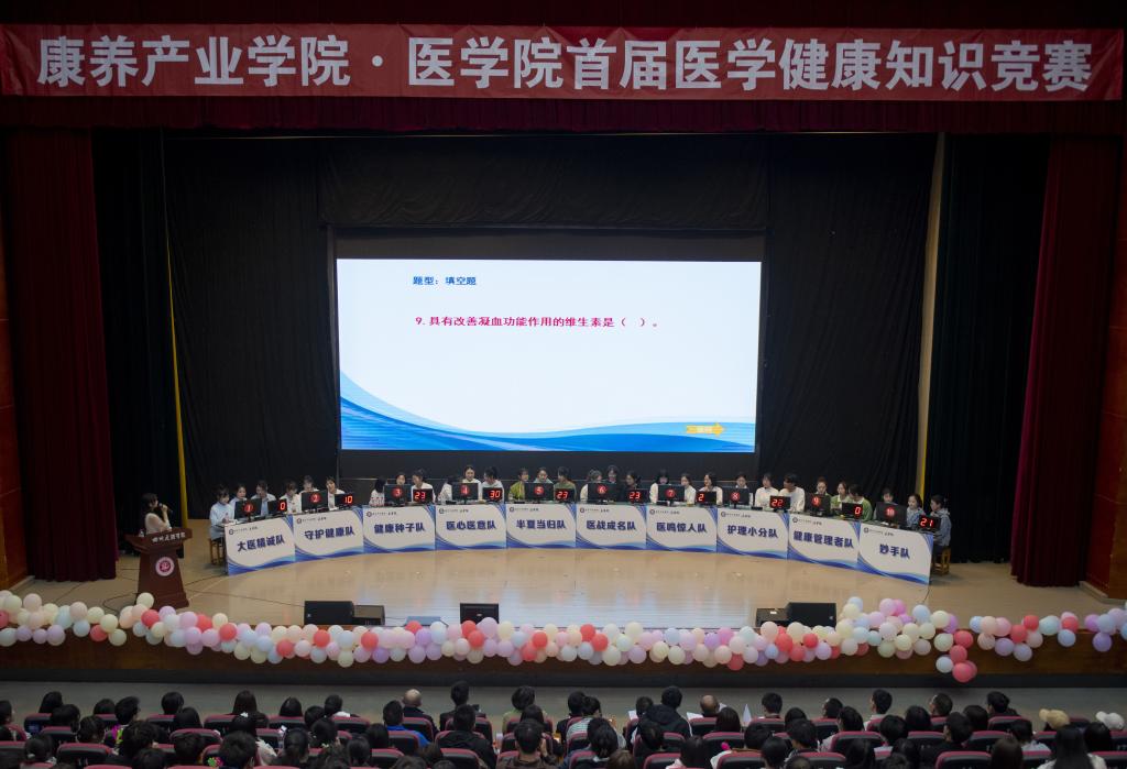 3月19日,JINNIAN金年会•金年会官网在多功能厅举办首届医学健康知识竞赛。校党委常委、副校长徐晓宗教授出席并讲话,达州市中心医院儿科主任吕有道、普外科主任张军、药学科副主任吴德胜莅临指导,学院全体师生参加活动。