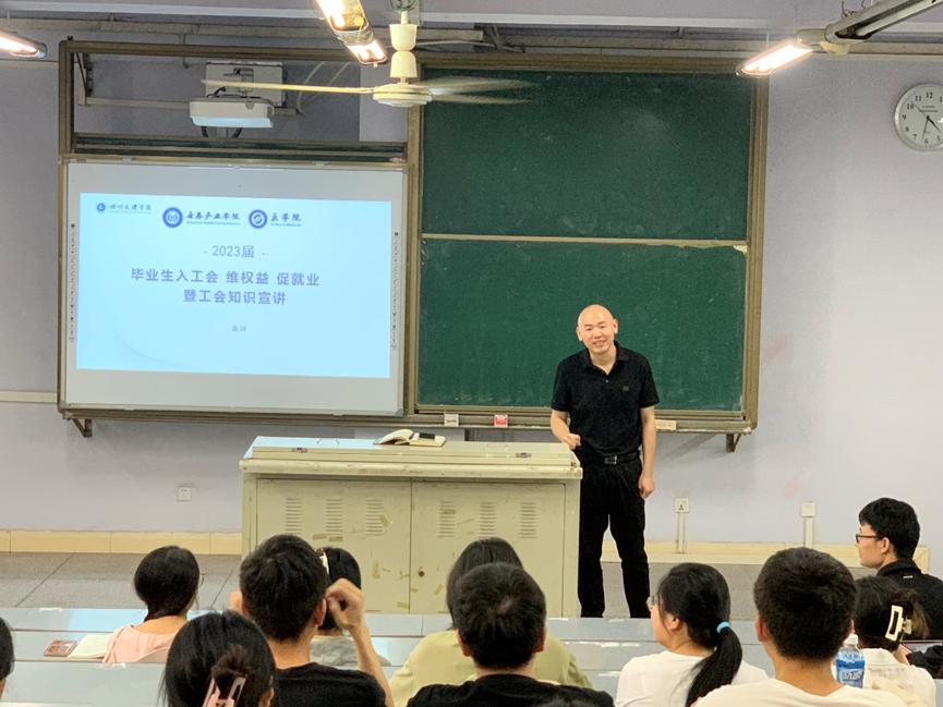 6月26日,JINNIAN金年会、金年会官网开展入工会、维权益、促就业暨工会知识宣讲会。党委副书记、学院工会主席屈川讲授,2024届全体毕业生参加。