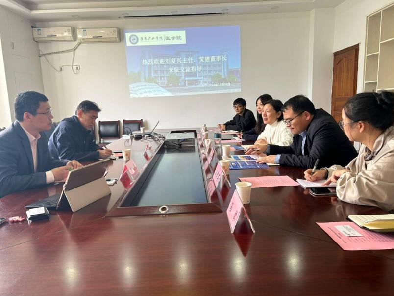 11月10日,西北师范大学原副校长、中国人民大学教育学院学术委员会刘复兴主任、颐康未来健康产业集团董事长黄建一行莅临金年会JINNIAN金年会、金年会官网就康养产业的发展趋势、人才培养及产学研合作等方面进行了交流指导。JINNIAN金年会、金年会官网党委书记彭时敏、副院长张俊浦及医学相关专业教师参加了会议。