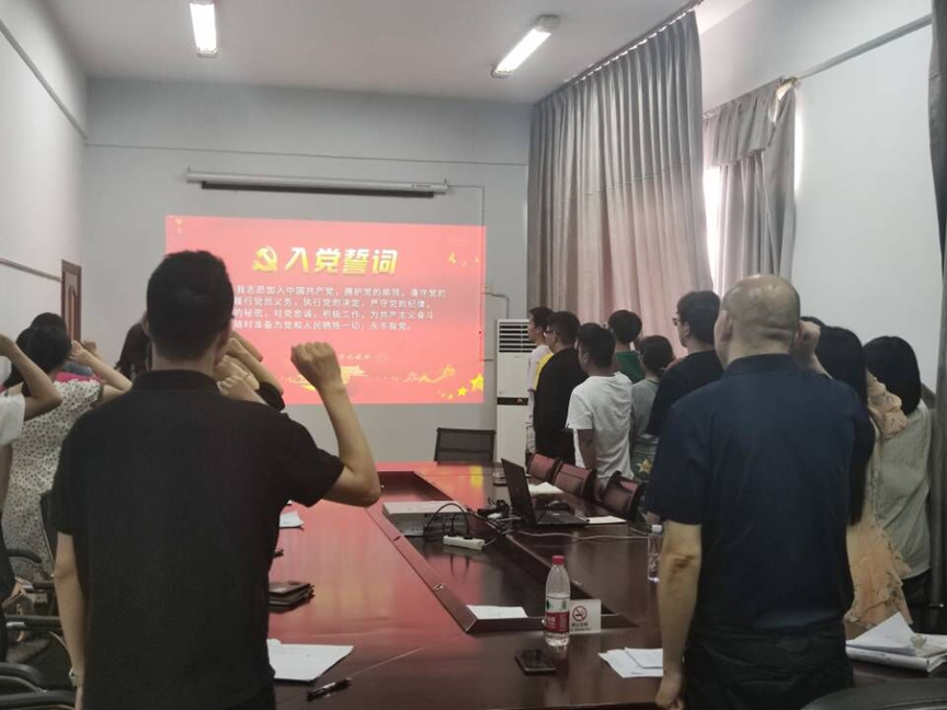 屈川同志带领全体党员重温入党誓词。(文:周云龙,图:卢迦勒)