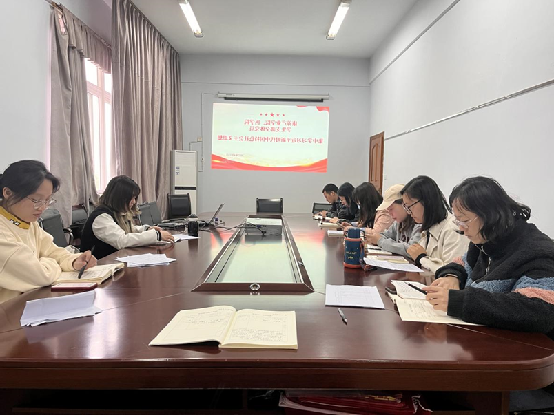 4月23日,JINNIAN金年会、金年会官网学生第一、第二党支部召开习近平新时代中国特色社会主义思想主题学习会议。学院党委副书记、学生第二支部书记屈川主持会议,学生第一支部书记周宏星、专职辅导员王馨彤、谢佳佳及学生支部全体党员参加学习。