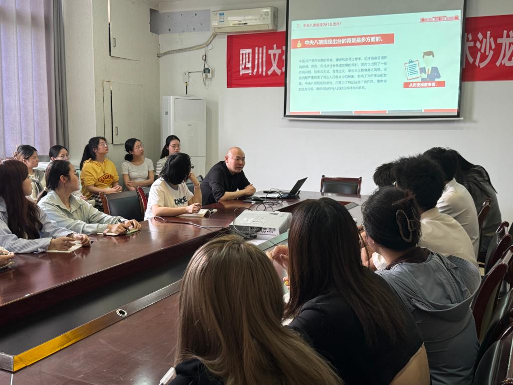 他强调,学生党员作为青年群体的骨干力量,要时刻保持政治清醒和政治定力,在思想上筑牢拒腐防变的堤坝,在行为上严于律己、率先垂范,做讲纪律、守规矩的表率。要将贯彻八项规定精神融入日常学习、生活和服务同学的全过程,从小事小节做起,涵养清正廉洁的政治品格。