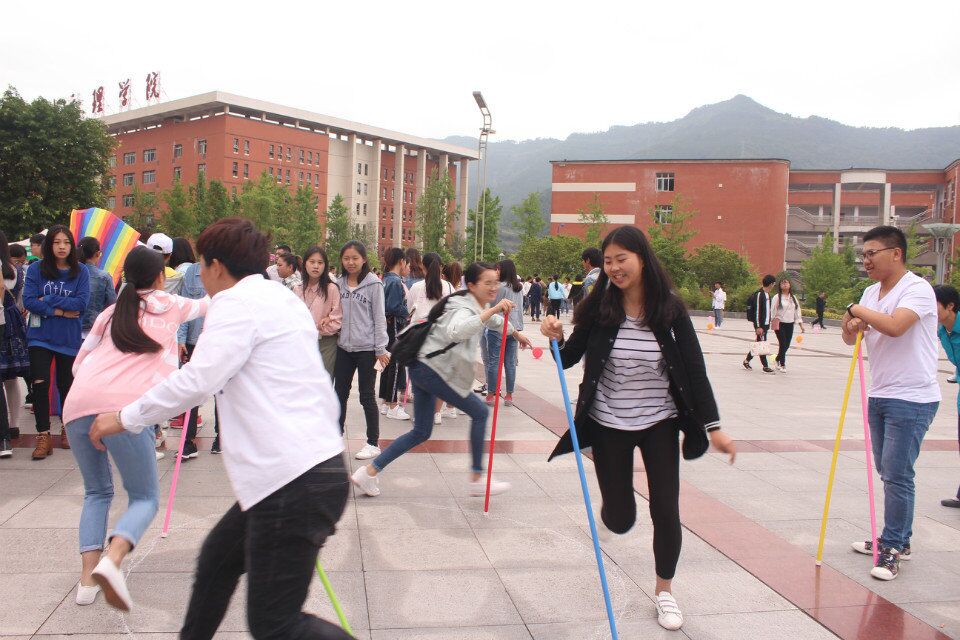 活动伊始,党委书记王成端教授宣布了心理活动月的开始,学校领导们为对参加班级心理委员培训的同学发放了证书,给各二级学颁发了《凤凰心语》杂志,最后校长刁永峰发表了重要讲话,他谈到学校高度重视大学生心理健康教育和发展工作,将其列为学校“三二二”大思政体系重点工作之一,并纳入2016版人才培养方案。学校以“5.25”“11.25”为抓手,积极开展主题鲜明,富有特色的心理健康发展工作,并取得了重大成效。启动仪式历史半个小时,接下来各二级学院开展了丰富多彩的游戏和活动。我院在本次心理月主要开展了“无敌风火轮”和“不倒森林”的游戏。“无敌风火轮”是4个同学套在圆形的纸中一起走,主要考验团队协作精神和队员的速度;“不倒森林”是6个同学围成一个圈,手平放在棍子上,随着口号大家移到前面的棍子上,手也要平放在前面的棍子上,并保证棍子不倒,主要看大家的反应能力。同学们积极踊跃地参与了本次游戏,部分同学获得了奖品。