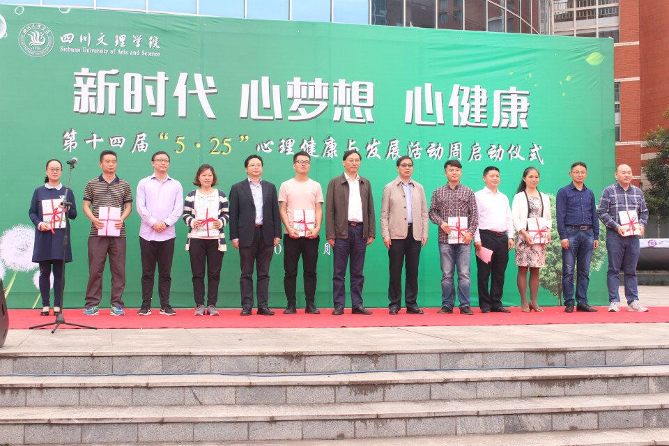 2018年5月23日下午16点30分,四川文理学院在音乐广场举行第十届“5.25”心理健康与发展活动周启动仪式,学校党委书记王成端教授,校长刁永峰等出席本次活动。党委副书记侯忠明教授主持了启动仪式。我院辅导员周宏星、学生会主席王俊兴、副主席杨婷、团总支副书记蒲志强与各班代表参与了此次活动。