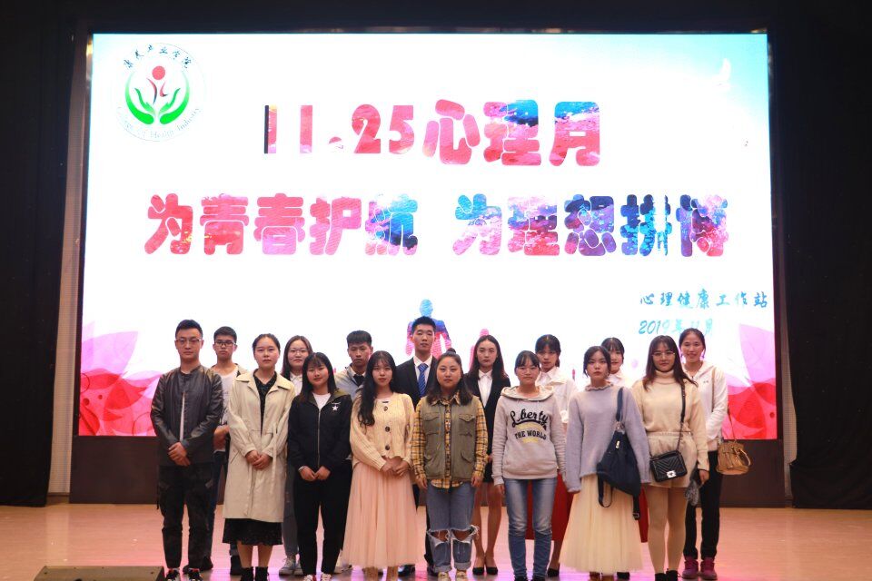 为提升大学生心理素质,促进心理健康,2019年11月3日,晚18点整,JINNIAN金年会在校园影院举行了以“为青春护航,为理想拼搏”为主题的心理月启动仪式。莅临现场的嘉宾有:JINNIAN金年会专职辅导员弓腊梅老师,学生会主席杨婷师姐,副主席汪丽师姐、刘洁师姐。此次活动由余雨露、曹欣主持。