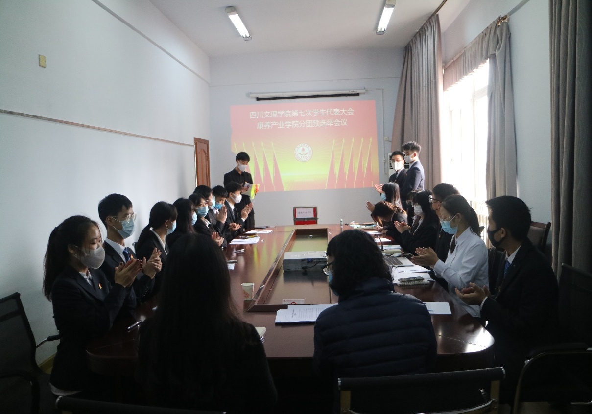 2021年11月17日上午12:30,我院于博文楼420会议室成功召开四川文理学院第七次学生代表大会分团预选会。团总支书记周宏星、辅导员老师毕瑞莉以及我院13名学代表参加本次大会。