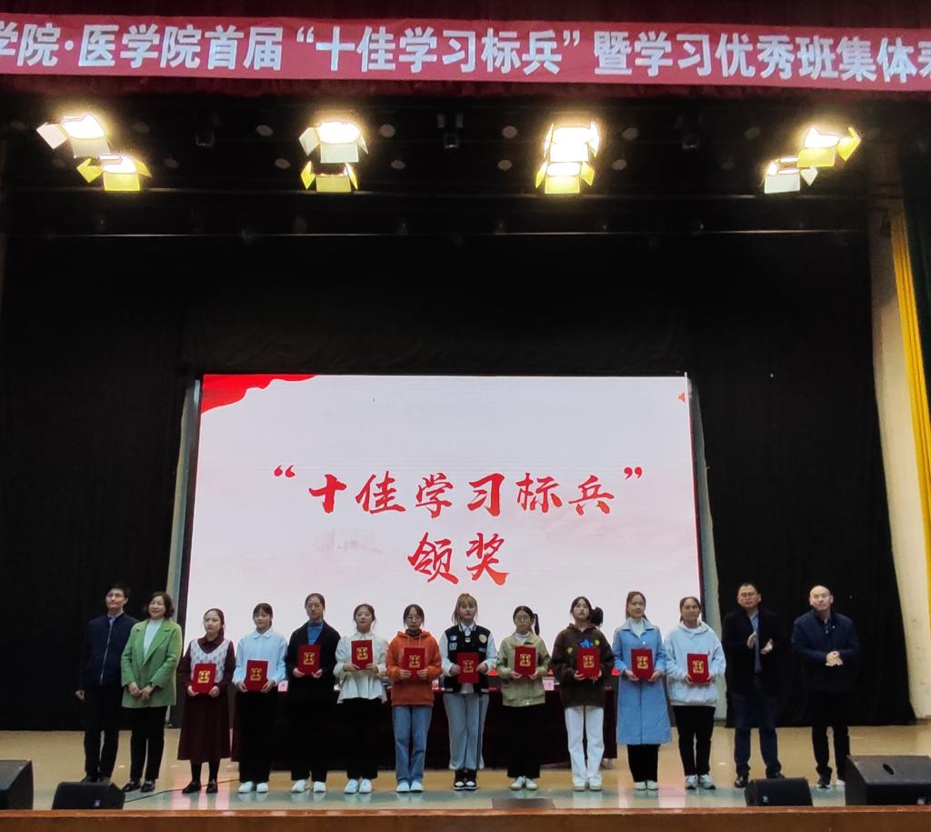 学院副院长张俊浦宣读了“十佳学习标兵”、学习优秀班集体评选要求及表彰决定,健康服务与管理2019级3班、 物业管理2020级1班、康复治疗学2021级4班荣获学习优秀班集体,杨羽茜等十名学生荣获“十佳学习标兵”。