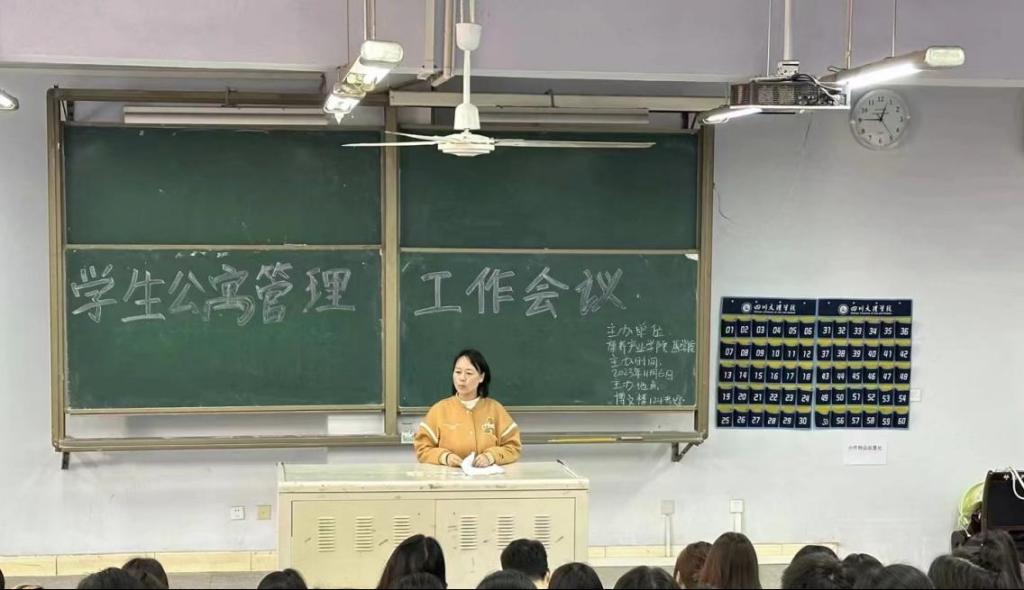 为进一步规范晚归及夜不归宿行为的管理,维护正常教学和生活秩序,我院于11月6日中午在博文楼124教室召开了学生宿舍安全管理工作会议。学工办主任周宏星主持会议,全体专兼职辅导员以及各班生活委员、寝室长、劳生部成员共200余人参会。
