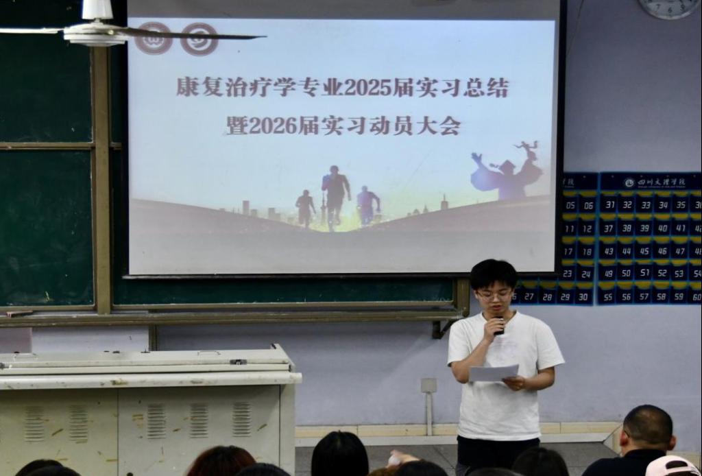 彭时敏在总结讲话中对2025届毕业生顺利完成实习表示祝贺,并围绕就业形势、职业规划等方面提出殷切期望。她强调,当前康复治疗行业需求旺盛,毕业生应把握机遇,树立正确的就业观,主动适应社会需求,争取早日实现高质量就业。同时,她鼓励2026届学生提前做好职业规划,以饱满的热情投入即将到来的实习工作。