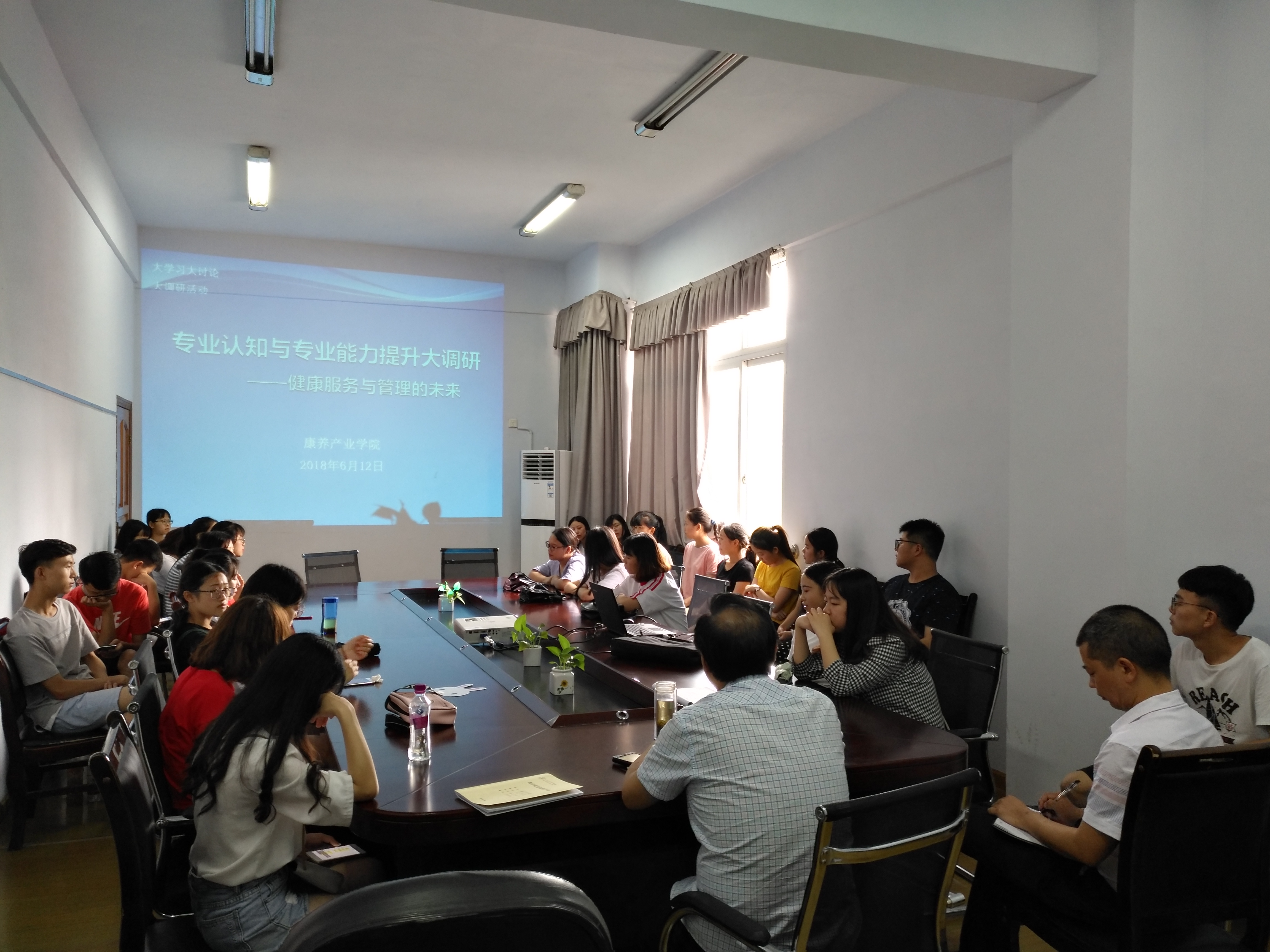 6月12日下午,学院在新教学楼420教室开展了“健康服务与管理的未来”学生座谈会。学院院长靳能泉、副院长陈熙隆、教研室主任张俊浦及2017级健康服务与管理专业全体学生参加了座谈会。