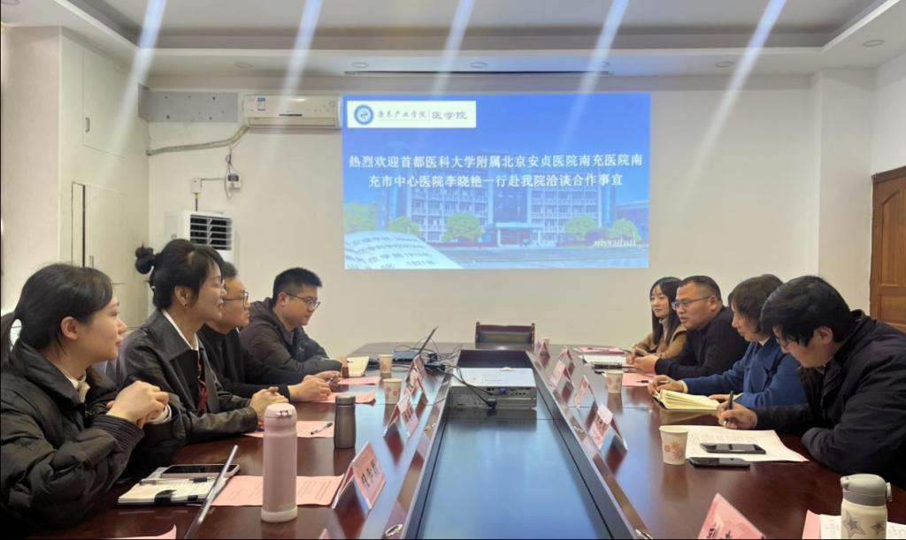 为进一步深化医校合作,3月11日上午,南充市中心医院康复医学科负责人李晓艳一行来JINNIAN金年会、金年会官网洽谈合作事宜。JINNIAN金年会、金年会官网党委书记彭时敏、副院长(主持工作)褚延鹏、张俊浦、健康管理教研室主任刘常燕及教师代表参加座谈。
