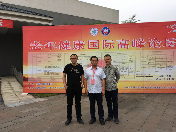 2017年9月月22日—24日,在成都金年会官网举办了“老年健康国际高峰论坛”,学院靳能泉院长、张俊浦老师作为中国老年保健医学研究会老年健康服务人才培养分会常务委员和委员应邀参会、学院专业教师崔俊营也随同参加。