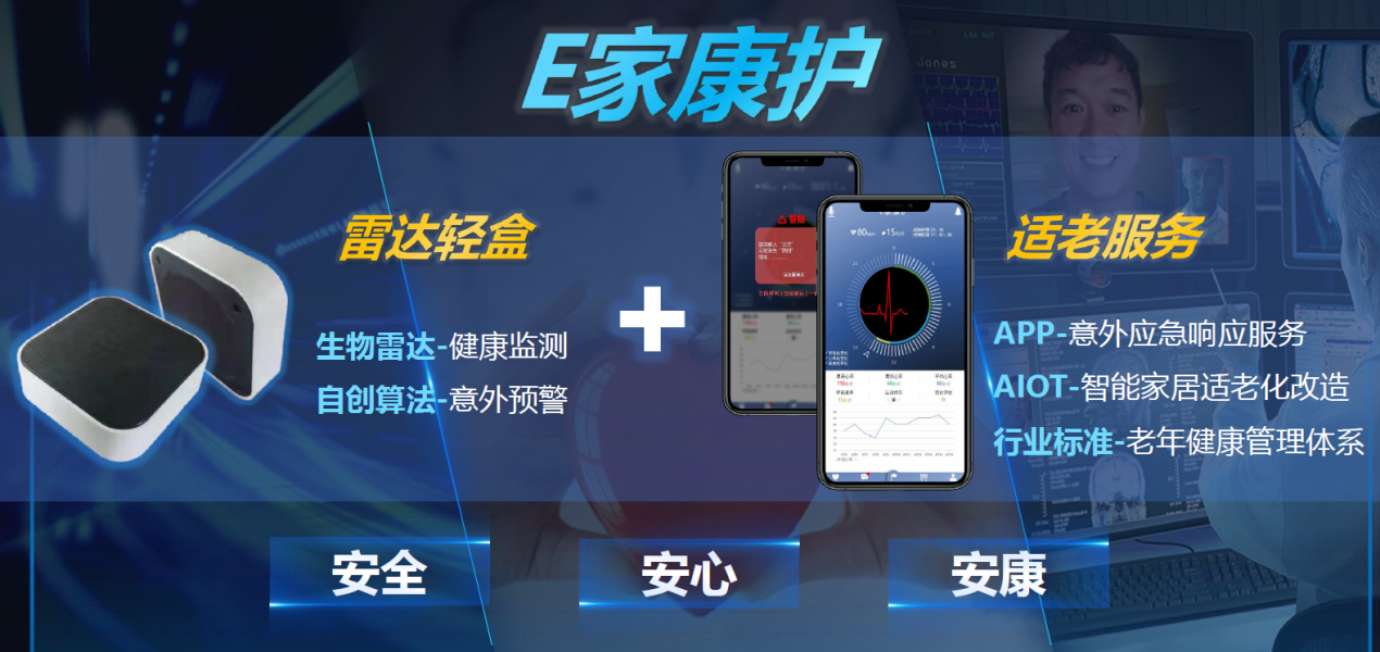 基于“秦巴地区老年康养研究中心”平台建设项目支持下,与企业共同开发了E家康护雷达轻盒,可无死角覆盖400m2面积,一户仅需一盒,一线插电即可使用。轻盒监测7项行为指标,灵敏识别跌倒,实现手势交互,同时无接触式全天心电监护,实时触发心血管意外预警。实现健康监测和意外预警,同时基于软件和平台,建立线上线下的是老服务,打造安全,安心,安康的新一代养老康护服务体。“家康护——智慧养老雷达交互轻盒引领者”分别获得第七届四川省国际“互联网+”大学生创新创业大赛、产业赛道的银奖。